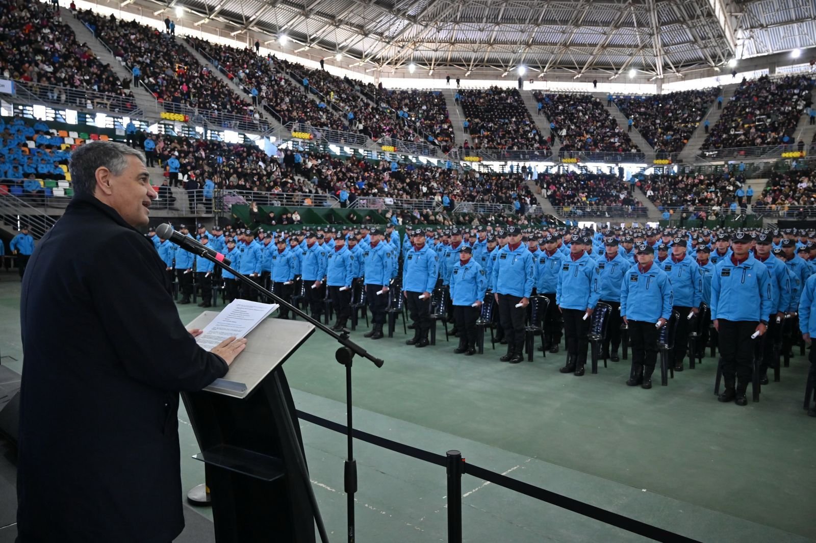 “El orden y la seguridad son condiciones indispensables para que haya progreso y los ciudadanos vivan libremente”, dijo el Jefe de Gobierno, Jorge Macri, quien presidió una emotiva y multitudinaria ceremonia de jura de los oficiales junto a sus familiares en el estadio Mary Terán de Weiss, en el Parque Roca. Y agregó: “Nosotros no ponemos excusas: nos hacemos cargo todos los días de una tarea compleja, pero irrenunciable. Para el Ministerio de Seguridad, para la Policía de la Ciudad, para la Justicia y para este equipo de gobierno, la seguridad es una política prioritaria”. La fuerza porteña cuenta con 27.300 efectivos.