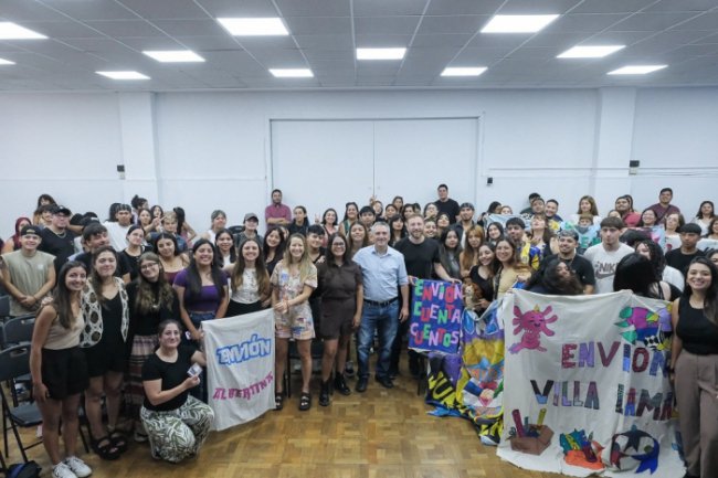 Larroque y Otermín se reunieron con más de 100 jóvenes participantes del programa Envión, junto a tutores y equipos técnicos. Los representantes pertenecían a las sedes Albertina, Independencia, Santa Catalina y Fiorito Norte, quienes contaron acerca de los proyectos desarrollados, algunos de los cuales fueron seleccionados por la iniciativa Decisión Niñez y están en plena ejecución.